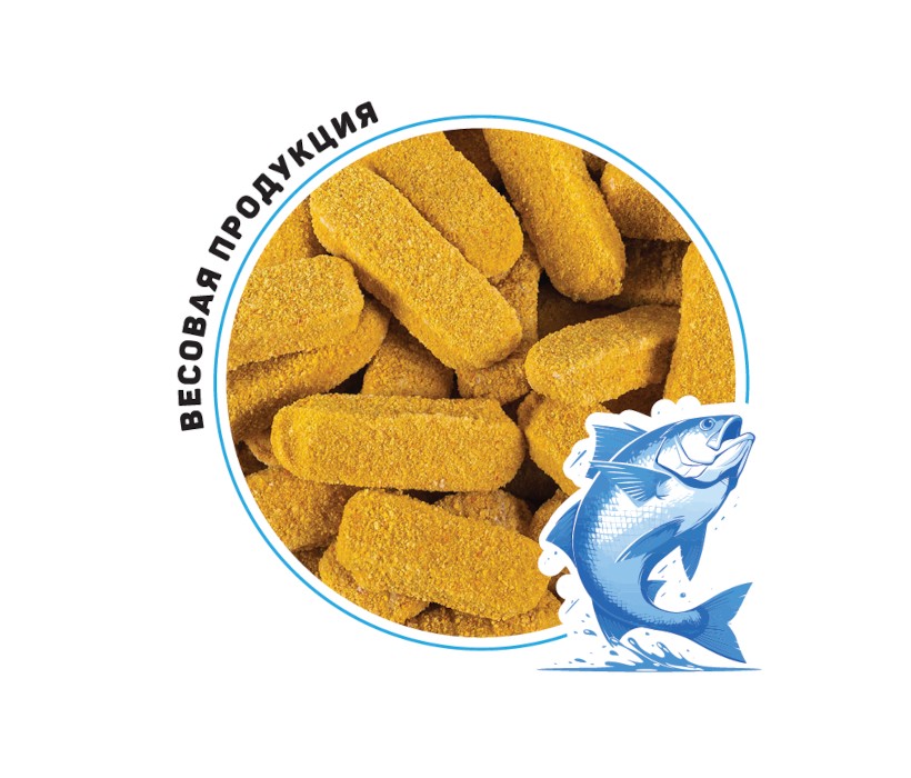 Фарш рыбный, кожа куриная, лук репчатый, шпик свиной, соль, сухари панировочные, перец черный, специи.