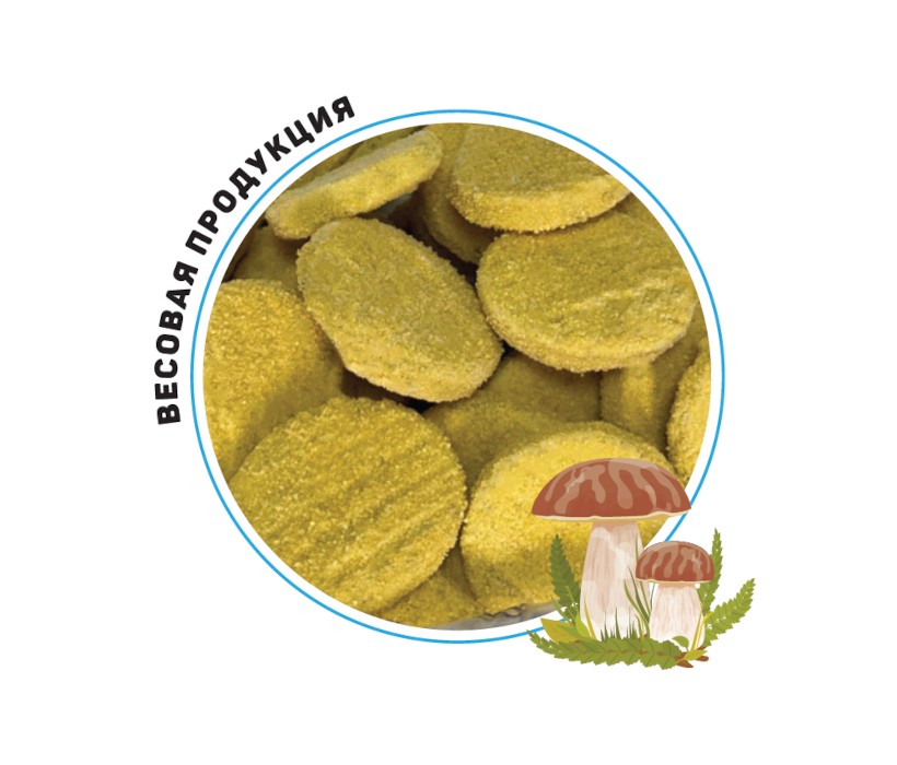 Картофель отварной, грибы вареные, сухари панировочные, лук жареный, вода, масло растительное, соль, перец черный, специи.